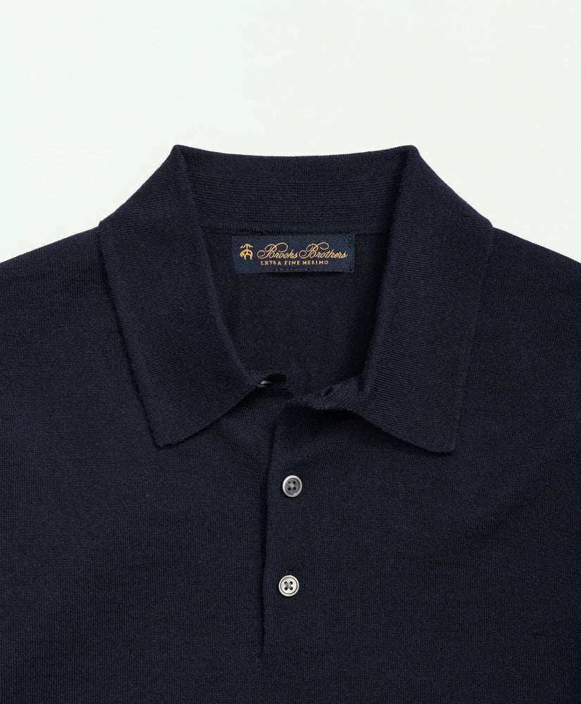 Brooks Brothers – Suéter Polo de Lana Merino – Azul Navy