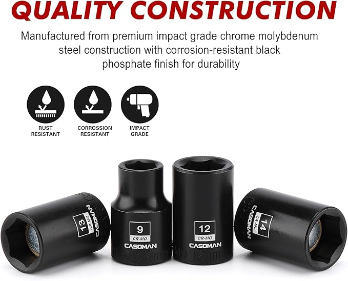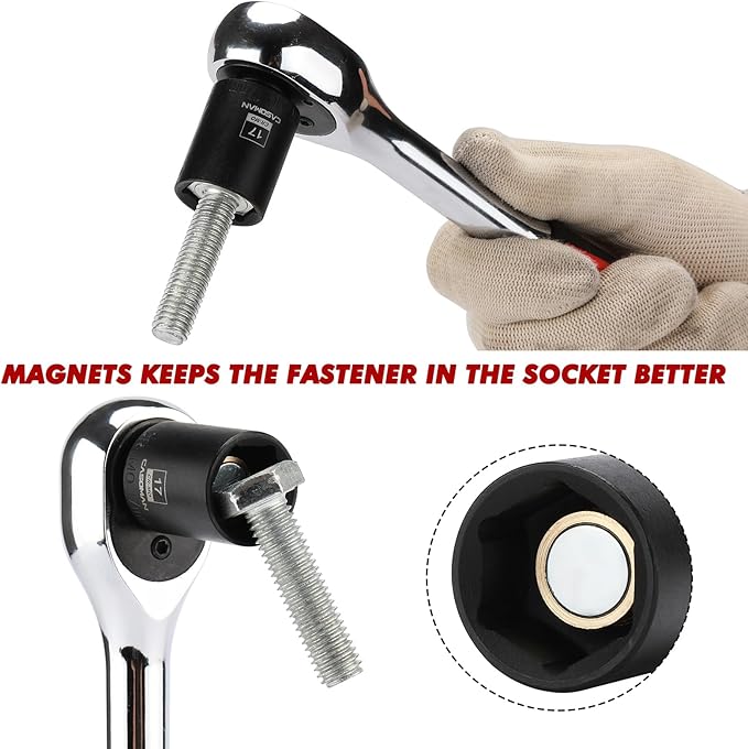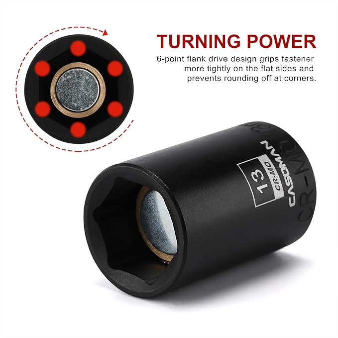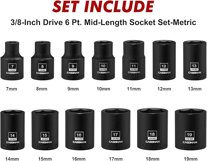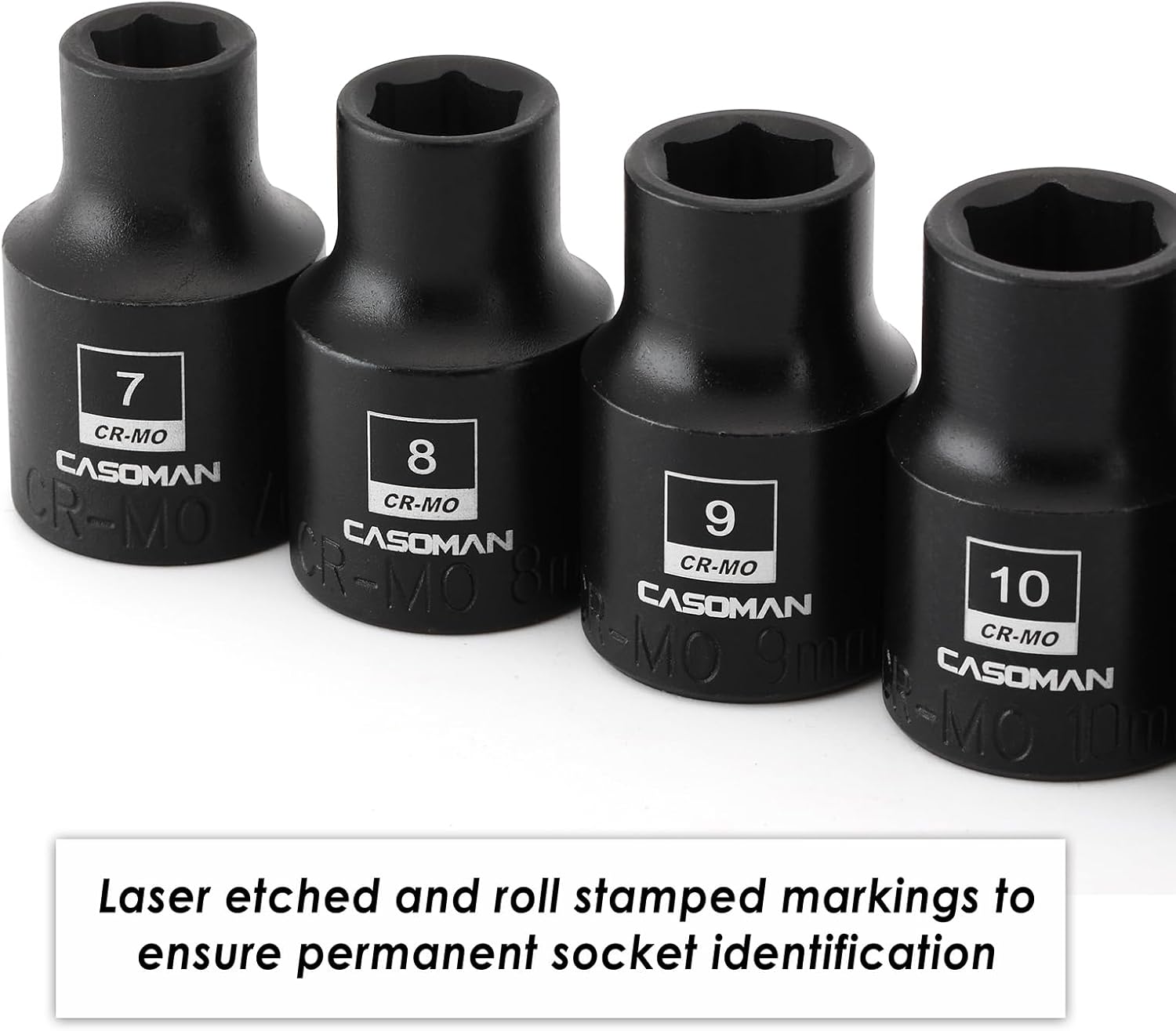 Juego de 13 llaves métricas magnéticas CASOMAN, 3/8 de pulgada, 6 puntos, perfil bajo, medidas de 0.276" a 0.748", material CR-MO.